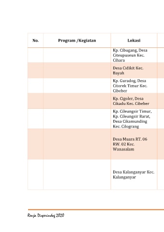No. Program /Kegiatan Lokasi Indikator Kinerja Catatan