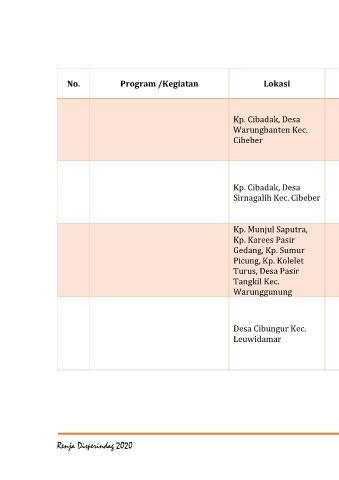 No. Program /Kegiatan Lokasi Indikator Kinerja Catatan