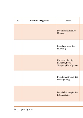 No. Program /Kegiatan Lokasi Indikator Kinerja Catatan