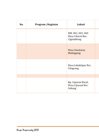 No. Program /Kegiatan Lokasi Indikator Kinerja Catatan