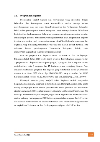 sesuai dengan prioritas dan sasaran pembangunan tahun 2020. Program dan kegiatan