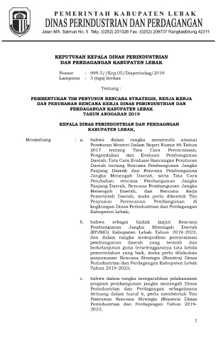 Nomor : 999.5//Kep.05/Disperindag/2019