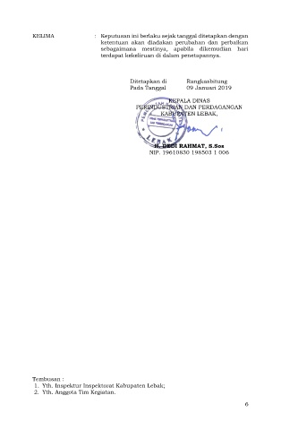 KELIMA : Keputusan ini berlaku sejak tanggal ditetapkan dengan