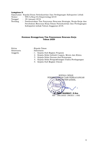 Tentang : Pembentukan Tim Penyusun Rencana Strategis, Renja Kerja dan