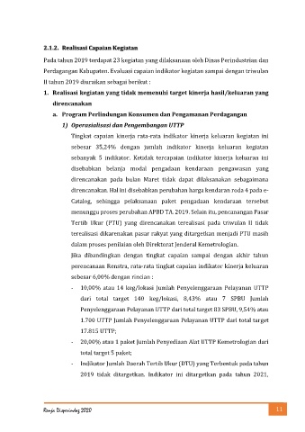 Perdagangan Kabupaten. Evaluasi capaian indikator kegiatan sampai dengan triwulan