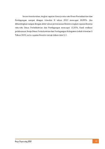 rata-rata Dinas Perindustrian dan Perdagangan mencapai 13,35%. Hasil evaluasi