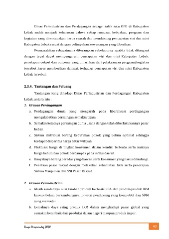 Tantangan yang dihadapi Dinas Perindustrian dan Perdagangan Kabupaten