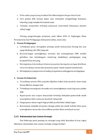 c. Iklim usaha yang kurang kondusif bila dibandingkan dengan daerah lain.