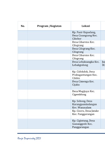 No. Program /Kegiatan Lokasi Indikator Kinerja Catatan