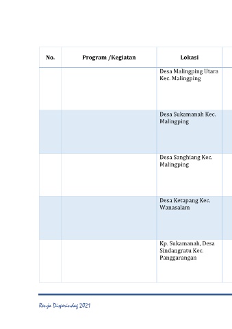 No. Program /Kegiatan Lokasi Indikator Kinerja Catatan