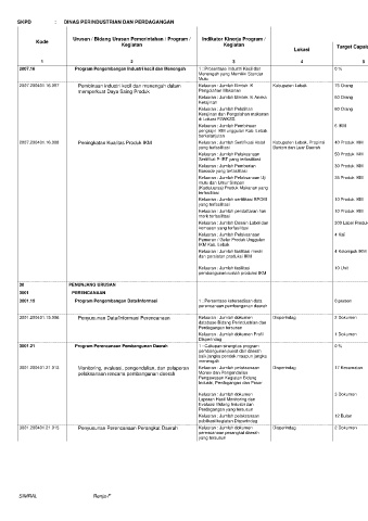 3001.200401.21.015 Penyusunan Perencanaan Perangkat Daerah Keluaran : Jumlah dokumen Disperindag 2 Dokumen 25.000.000 Pajak Daerah 2 Dokumen 150.000.000