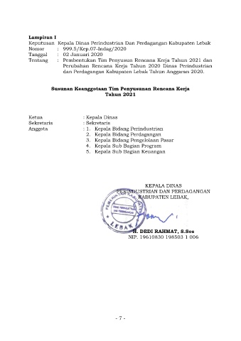 Keputusan Kepala Dinas Perindustrian Dan Perdagangan Kabupaten Lebak